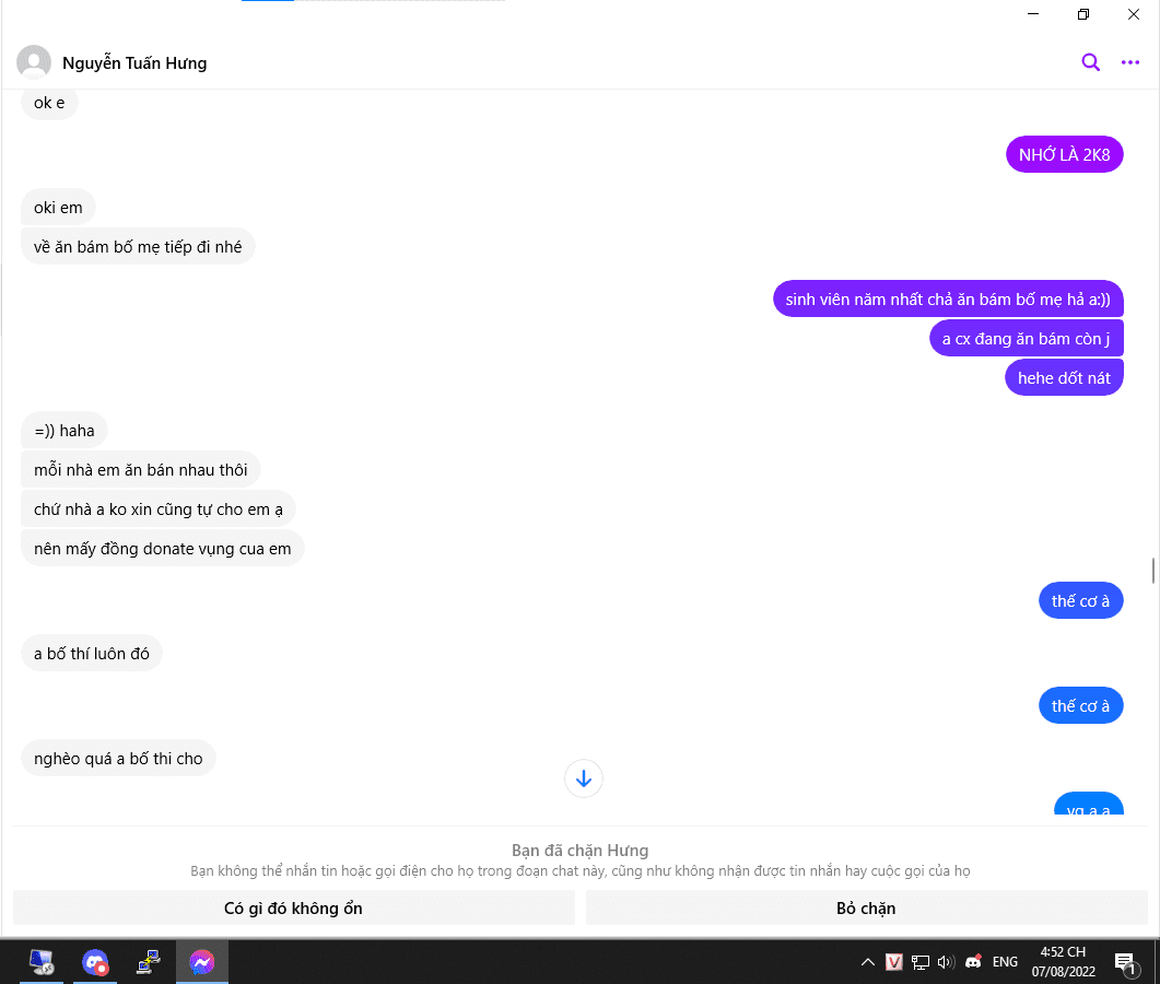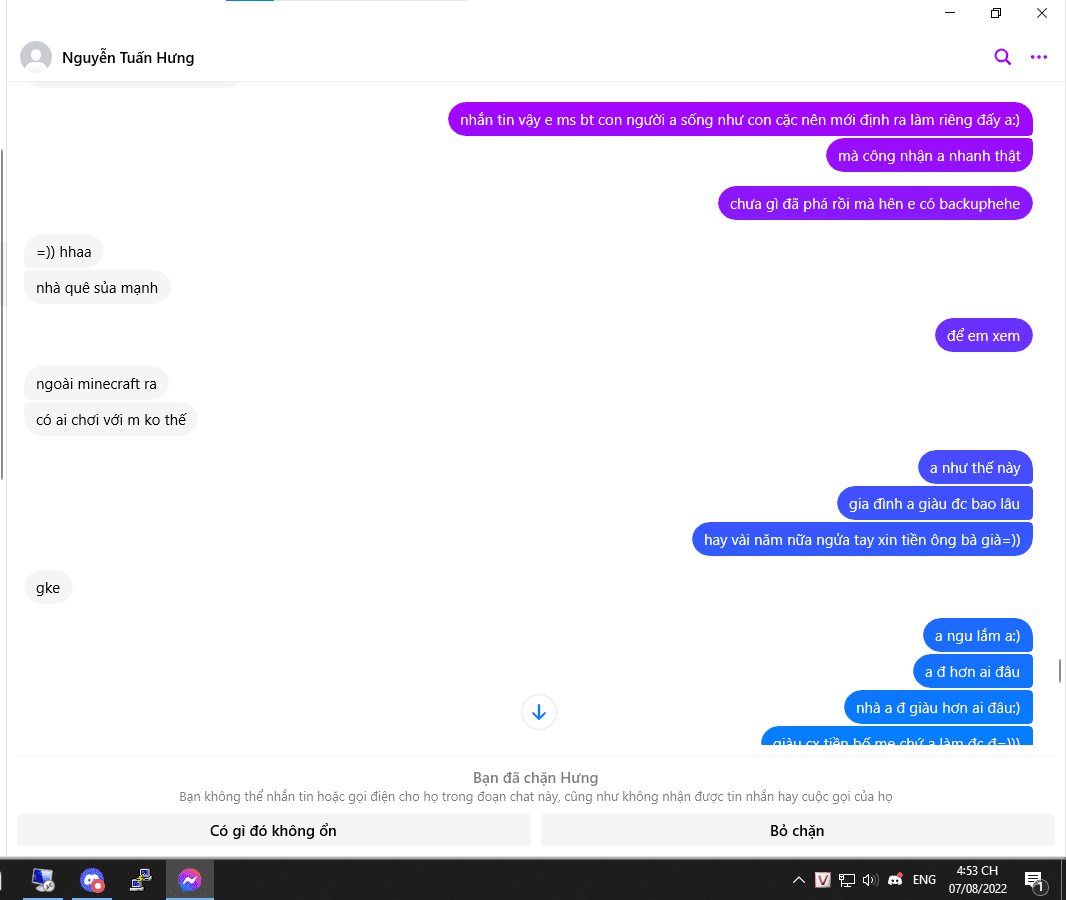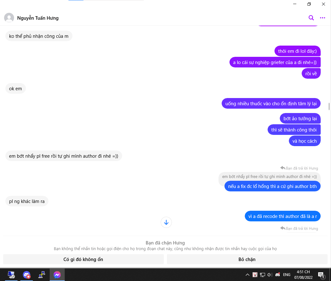 BỐC PHỐT NGUYỄN TUẤN HƯNG 2k5 Hbeo 05 và đang là owner team DT ( ko bt bốc phốt hay ko vì lúc trc làm chung nó bảo thế) và hiện tại đang làm cụm skyblock ở minebachay. Mình là người thích chơi mc và muốn mở 1 sv minecraft cho mọi người, nhưng vì ko có kinh phí nên mình ko làm cho đến khi gặp được hưng. Hưng mời mình vào làm chung vì nói rằng mình có tài năng, khi vào thì mình có nói là ko kinh phí để góp vps chung như bù lại thì tiền donate sẽ ăn chia 6-4 hoặc 5-5. Khi bắt đầu làm 1 thời gian thì cụm của mình 0 mem thì nó luôn nói là "đéo có mem xoá cụm của m đi để cũng có mem đéo ?" nhưng mình nhất quyết ko xoá vì chưa hoàn thành xong. Cho đến khi mình làm xong cụm thì mem bắt đầu có triển dần và dần dần là trụ cột của cả sv (tất cả cụm của hưng đều 0 mem). Do 1 phần cụm của nó bắt đầu flop là do nó leak/lấy file của ng khác xong bỏ vào sv để chạy ? ko chịu bỏ 1 chút chất xám và học hỏi trình độ nhưng vẫn muốn có lời??? Trong quá trình làm với nhau thì nó liên tục làm những chiêu trò bẩn thiểu và sủa dơ như là crash/exploit với nhảy port grief các server khác để kéo mem về server mình, và nó bắt đầu lộ cái bản tính súc vật ra là bắt đầu ganh ghét với mình và liên tục chửi mình, thể hiện ta là bố đời, nhà bố mẹ giàu và khinh mình thằng là thằng nhà quê và nhà nghèo (trong khi mình chưa hề nói gì liên quan đến kinh tế gd) nhưng đối với thái độ khinh ng như thế cx chỉ là 1 con súc vật mà thôi. Nó chuyên tìm các server khác để kêu hợp tác để bú liếm tiền donate và nếu đc sẽ cướp luôn cả file về làm của riêng. Đỉnh điểm của sự chịu đựng thì mình định sẽ tách ra làm riêng và có nói lại vs thg hưng, nhưng qua ngày hôm sau cụm của mình đã bị phá mình check ra thì bt là do thg hưng làm, chắc là trùng hợp nó copy file của mình ngay cái ngày bị phá