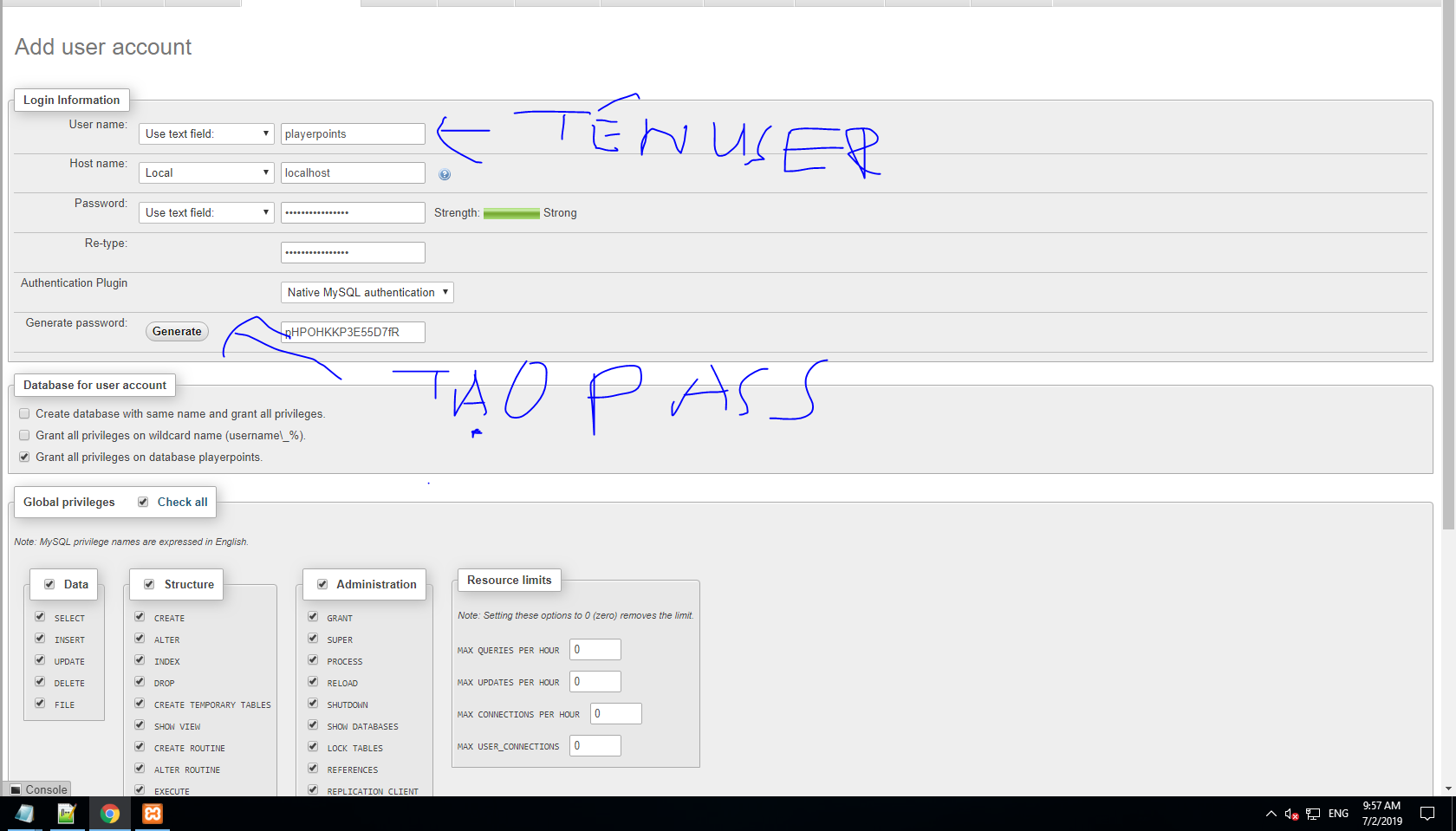 Bước 6: Tạo User LƯU Ý NHỚ COPY PASSWORD TRONG PHẦN USER