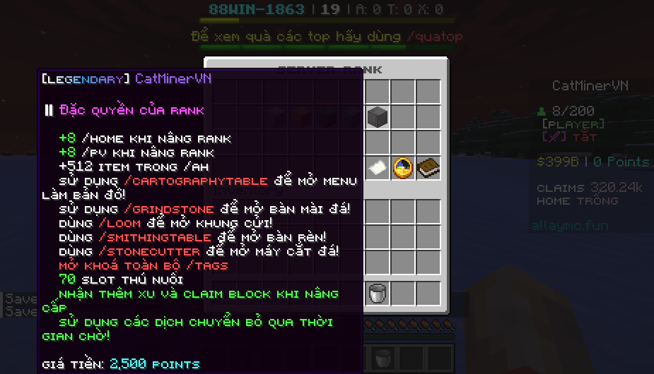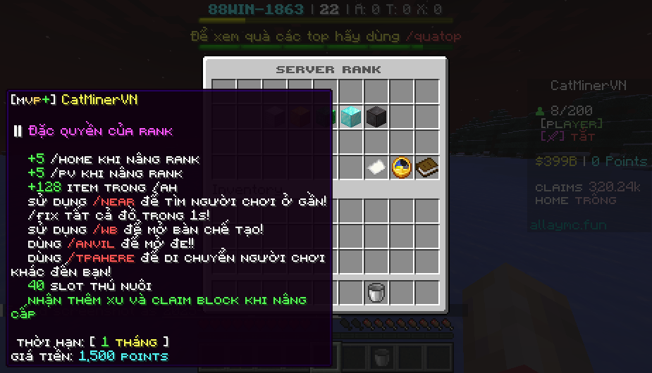 Dịch vụ Rank server minecraft 1.21