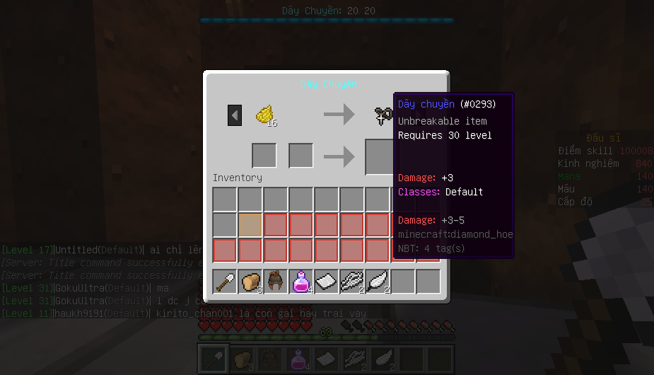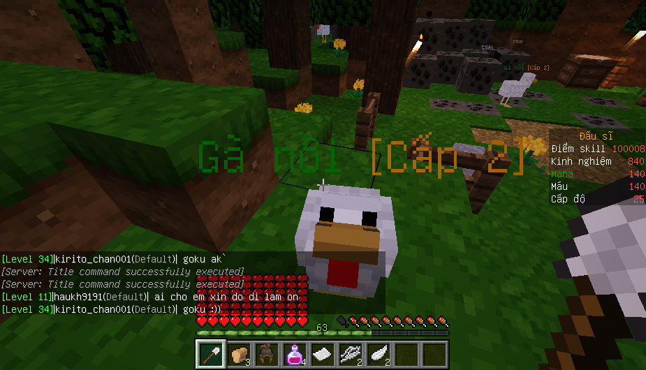 Nhập party cùng người chơi khác bằng cách /party invite [tên] bạn và họ sẽ không thể đánh nhau nhầm lẫn và có thể chat trong party để thực hiện nhiệm vụ !