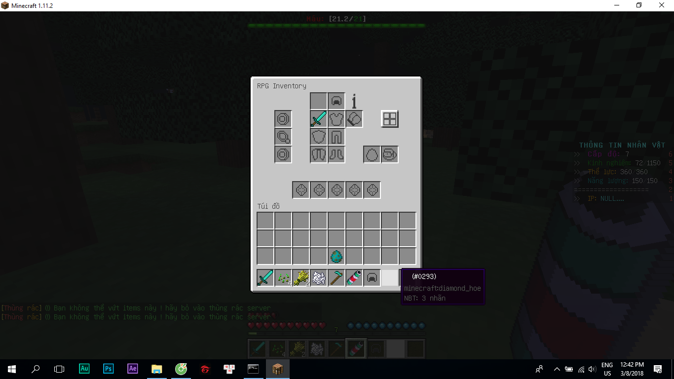 Kiểu như túi thường... mình bật E nhấn qua RPGinventory thì nó có mấy cái màu trắng đó ?làm phần RPGInventory mất đi 1 cái @@ bỏ vào thì k dc HELP~.~ với mn