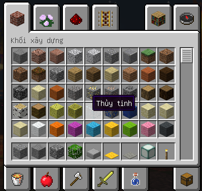 chơi phiên bản 1.13 trở lên là mấy block mới lấy bỏ xuống GUI để đặt sử dụng là nó bị biến thành đá á