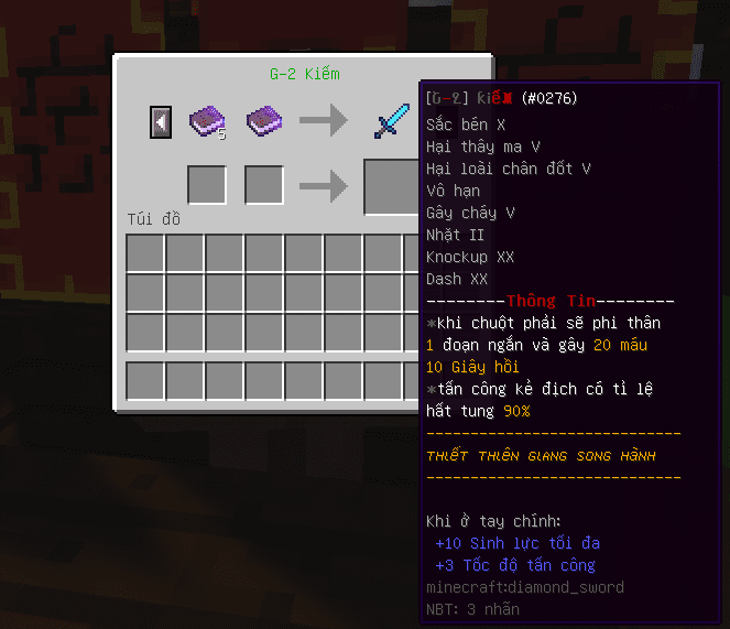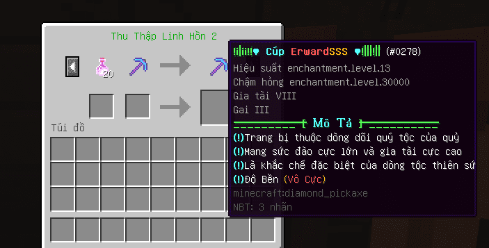 - Mở khóa giới hạn enchant của vaninal, điểm enchant là một loại tiền cực phổ biến trong server, người chơi có thể enchant tùy thích miễn là farm đủ điểm enchant