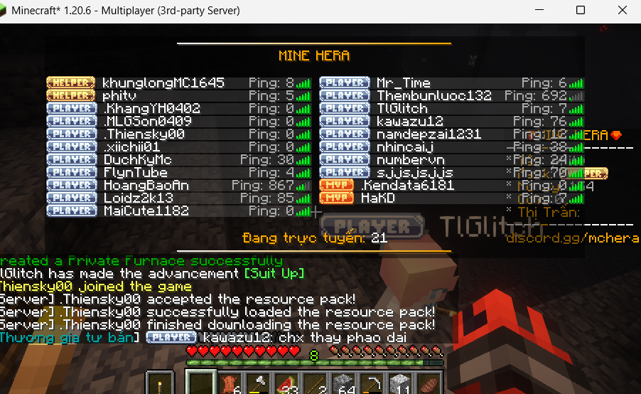 Bạn là một streamer đầy nhiệt huyết, yêu thích Minecraft và muốn tham gia cộng đồng năng động? Hãy tham gia đội ngũ sáng tạo nội dung của MINE HERA! Quyền lợi khi trở thành streamer của server: Phần thưởng in-game hấp dẫn. Quảng bá kênh cá nhân đến cộng đồng đông đảo của server. Tham gia các sự kiện đặc biệt dành riêng cho streamer. Yêu cầu: Có kênh YouTube hoặc TikTok đang hoạt động. Nội dung chất lượng, không vi phạm chính sách cộng đồng. Đam mê Minecraft và muốn lan tỏa niềm vui đến mọi người!