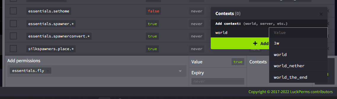 Làm sao để thêm premission /fly cho một cá nhân nhưng chỉ ở một vài world thôi vậy m.n?