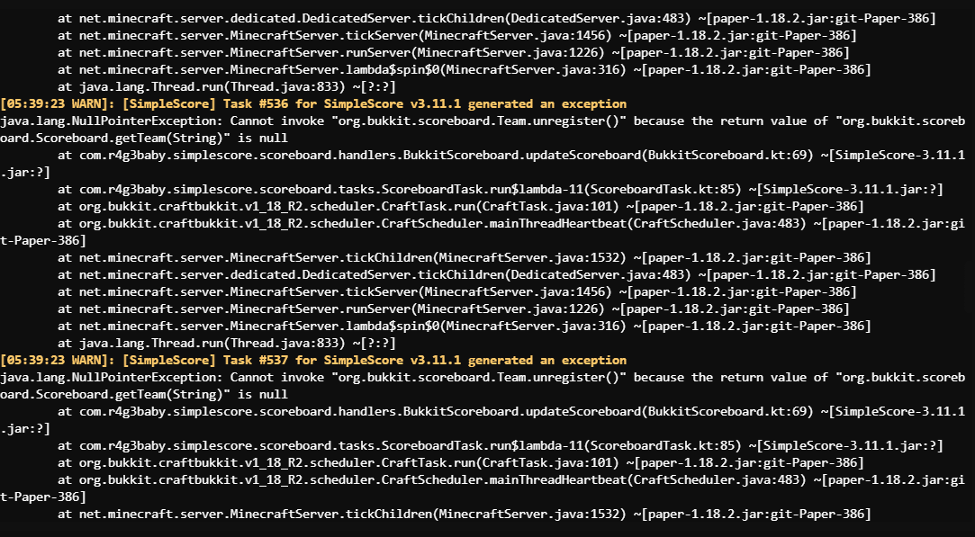 Nội dung: Cứ hể bật server lên là console nó spam cái như hình, chạy mãi mãi luôn, mặc dù cái bảng vẫn hiện.