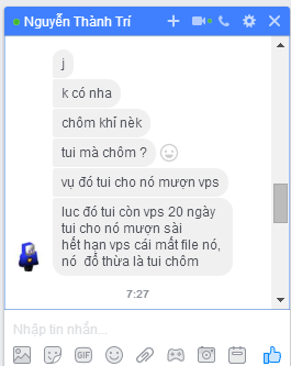 Mình có hợp tác với bạn #Choppernguyễn trên fb về 1 server RPG, bạn ấy được owner của "Trash là AOD hay AOD là Trash?" tài trợ, làm đã được 30%, còn mỗi phần quest thì bạn đấy cướp file và bảo rằng VPS hết hạn xong bơ luôn bạn Chopper trên, hơn nữa server đó còn mua file, RPG như faction ? QUỲ!