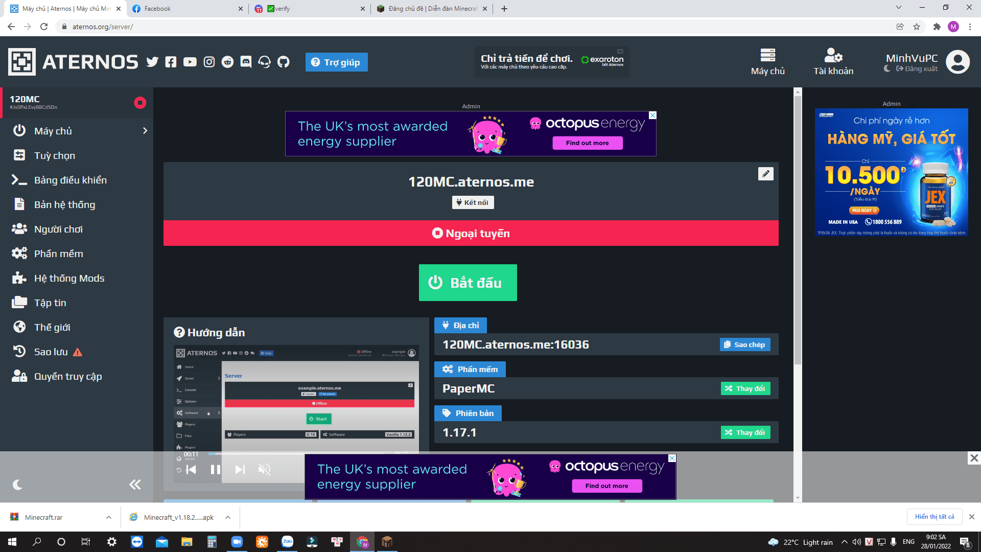Đi tuyển server Aternos