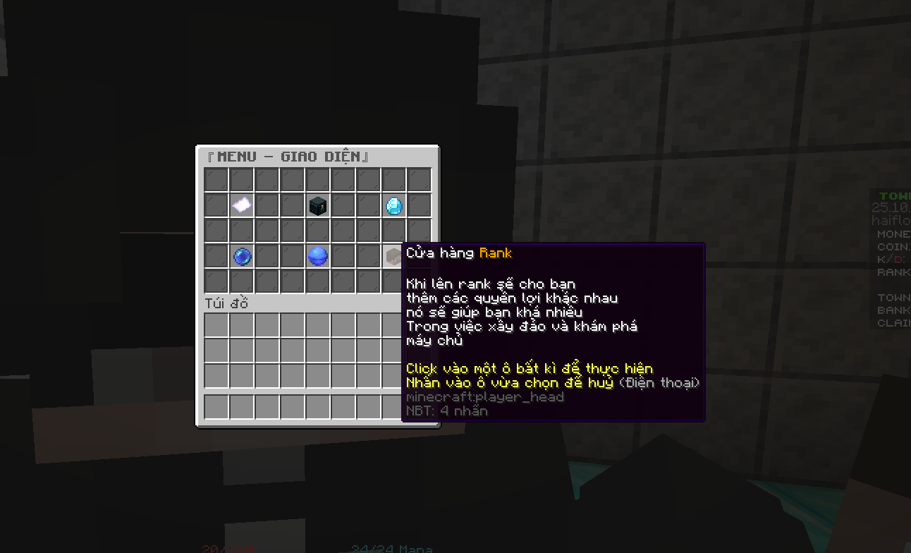 + /t spawn (Quay về điểm spawn trong town)
