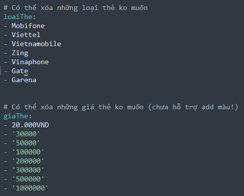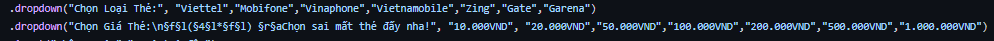 Nhà mạng và mệnh giá + message dropdown và một vài message khác đang hardcode nên được làm configurable