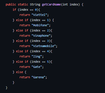 If else hell, cái này nên đưa vào Enum thay vì get theo index như này