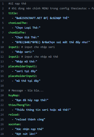 Đồng thời ở key xacnhan mình thấy bạn có kí tự \n để ngắt dòng, bạn có thể chuyển sang dùng stringlist để trông config của bạn gọn hơn, và đương nhiên sẽ giúp mọi người dễ tùy chỉnh hơn