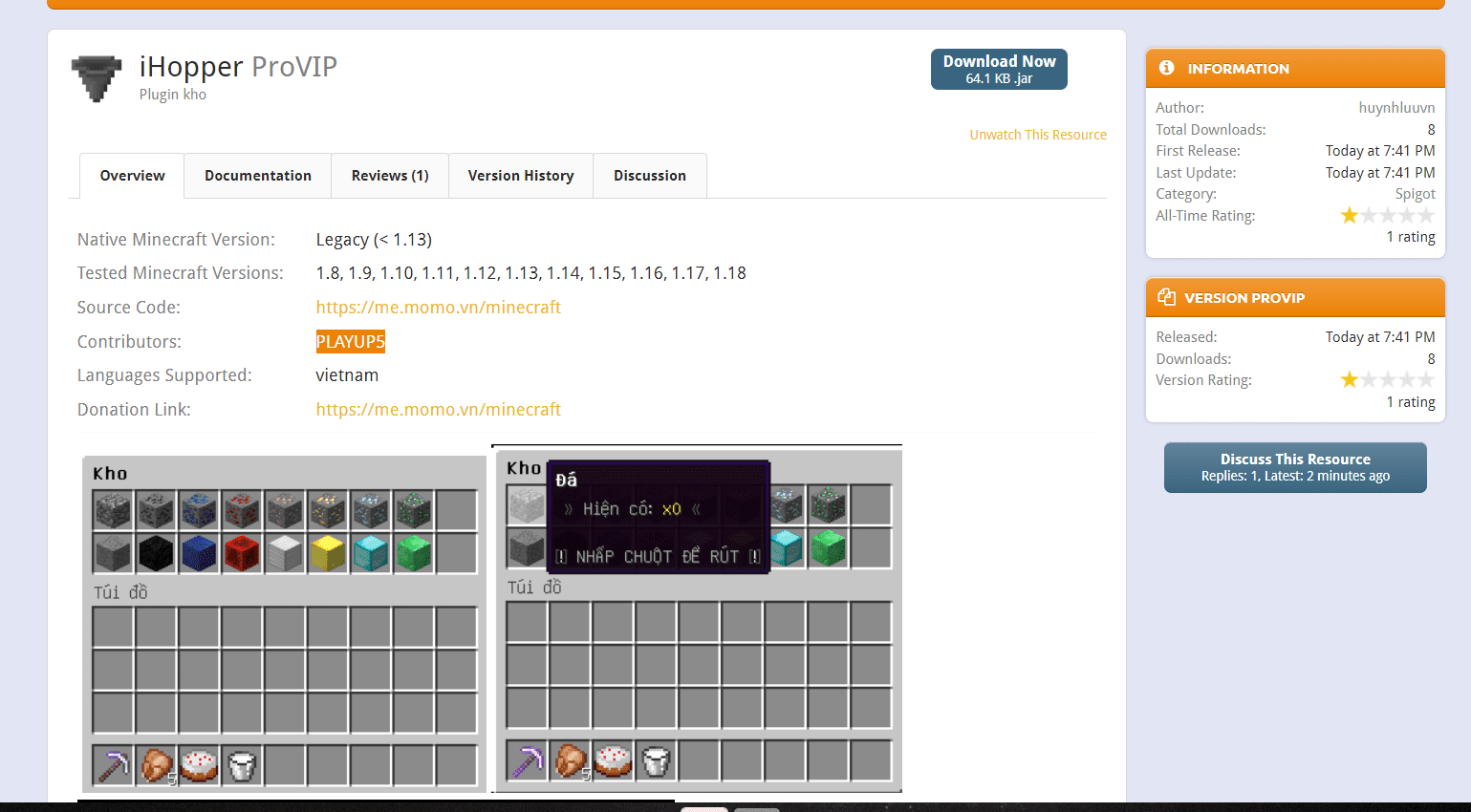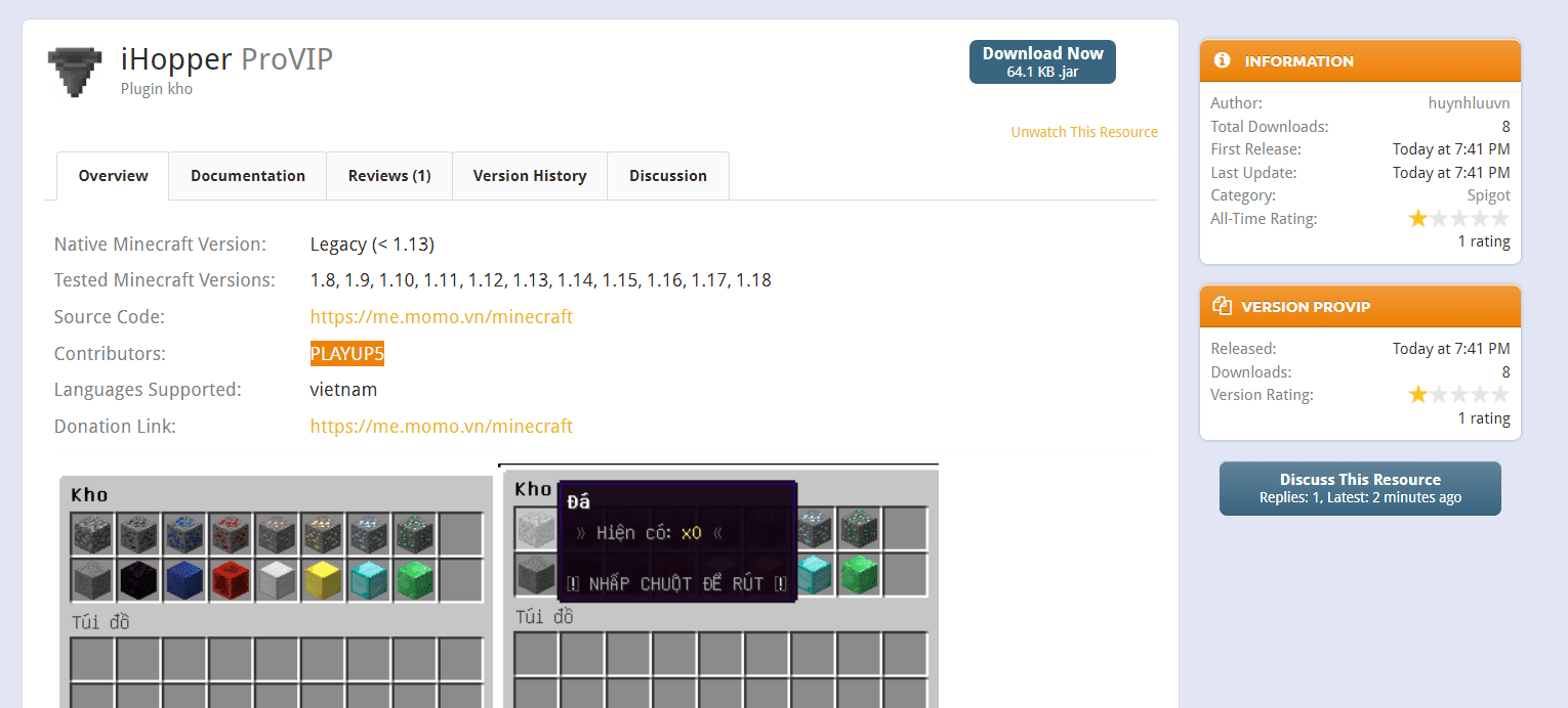 Cách đây tầm hơn 30 phút thì mình được report là một thanh niên có ingame là PLAYUP5 đã post tài nguyên của bọn mình lên SpigotMC.