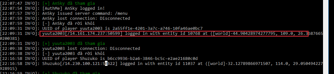 console như thế nghĩa là nó không đăng nhập bằng authme, có nghĩa là nó không biết mật khẩu ạ
