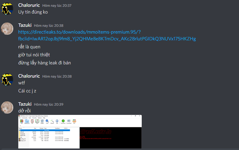 sau đó em hỏi mấy bạn đó không sợ em bị scam à thì bạn nói ""Sợ chứ nhưng 1 đống file lận có 2 cái mất sợ gì '' bạn gửi em file và thật ngạc nhiên là cả hai plugin mmoitem và mmocore đều lấy trên directleaks.to sau khi bị mình bốc phốt thì 2 bạn ấy block mình và xóa file ảnh ở dưới bình luận, hên quá không bị scan